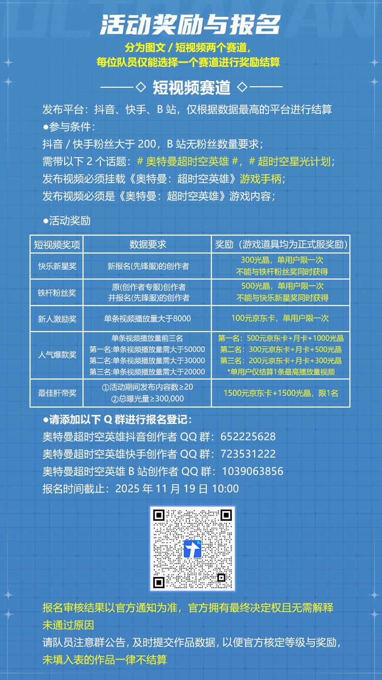 奥特曼超时空英雄抖音创作者QQ群:652225628