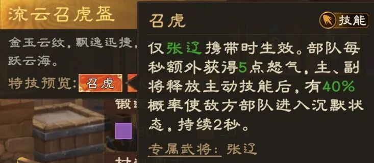张辽选择“出其不意”,作为主将配合被动可大幅提升怒气循环速率。