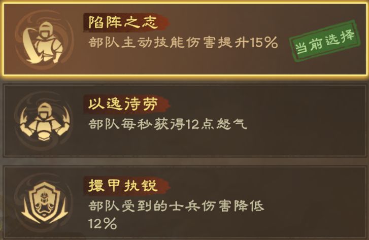 曹仁这里选择“陷阵之志”进一步提升主动技能伤害。