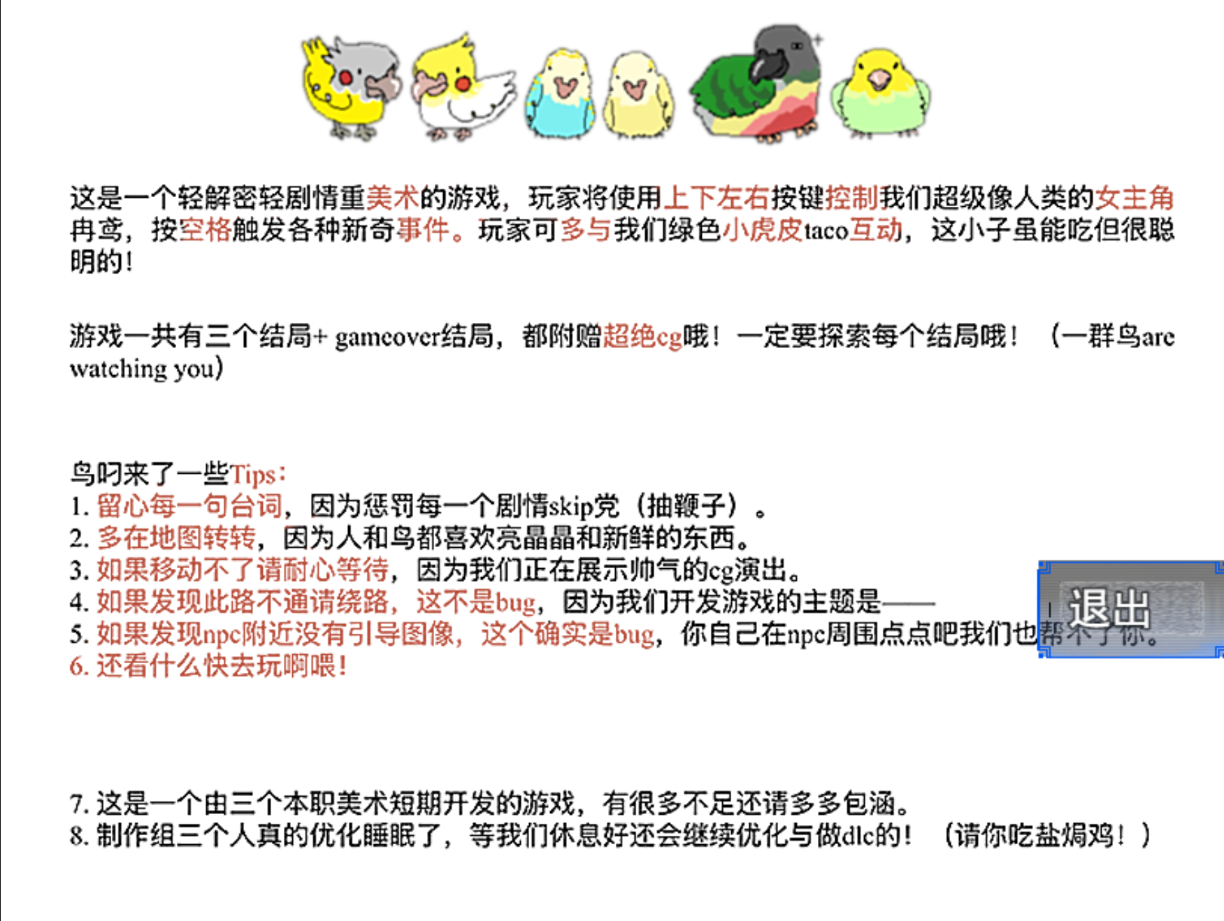 优秀的RM。表现力很不错。画的也可爱。场景设计剧情中也融入着各种反常识的小bug。对话鲜活。给人很多惊喜的游戏。可爱taco,吃文字中的*bug;进入画作中才能看到画作等等。游戏还有三个结局+gameover结局,非常的完整了。