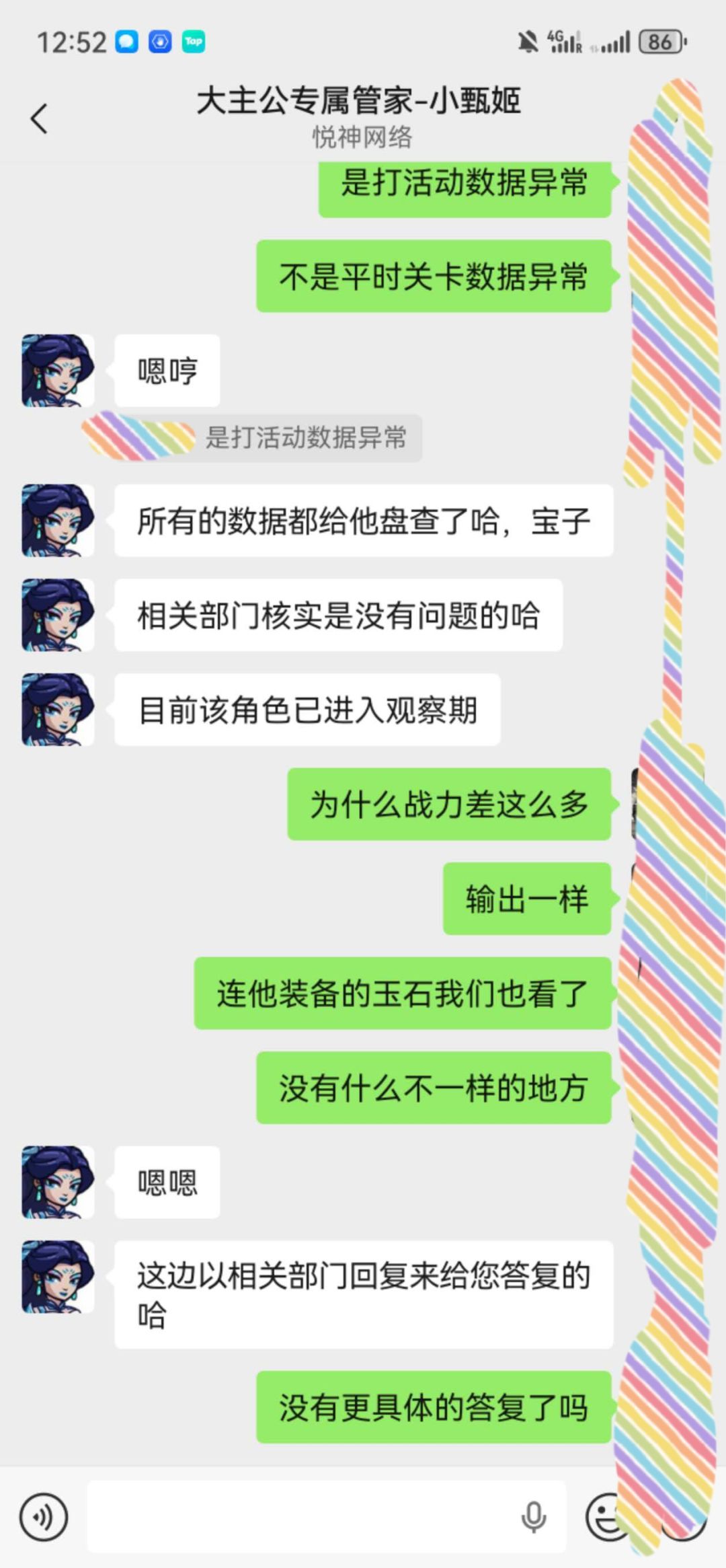 图4和图5是他们剑阁的伤害,差距大家自然可以看来,后面的图是我们找客服,客服告诉我们没有问题,没有问题让他们公开计算方法,他们也是闭口不言。