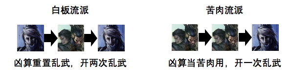 实战对局中应该重视乱武在所有角色都是残而不死的时候具有重要意义,应该在此时评估乱武的可能发挥(李傕郭汜要看贾诩的发挥,这一点也比较符合史实),决定技能的发动时机,决定凶算是否立刻重置乱武,还是进行卖血补刀,凭借完杀的强力效果,奠定胜局。
