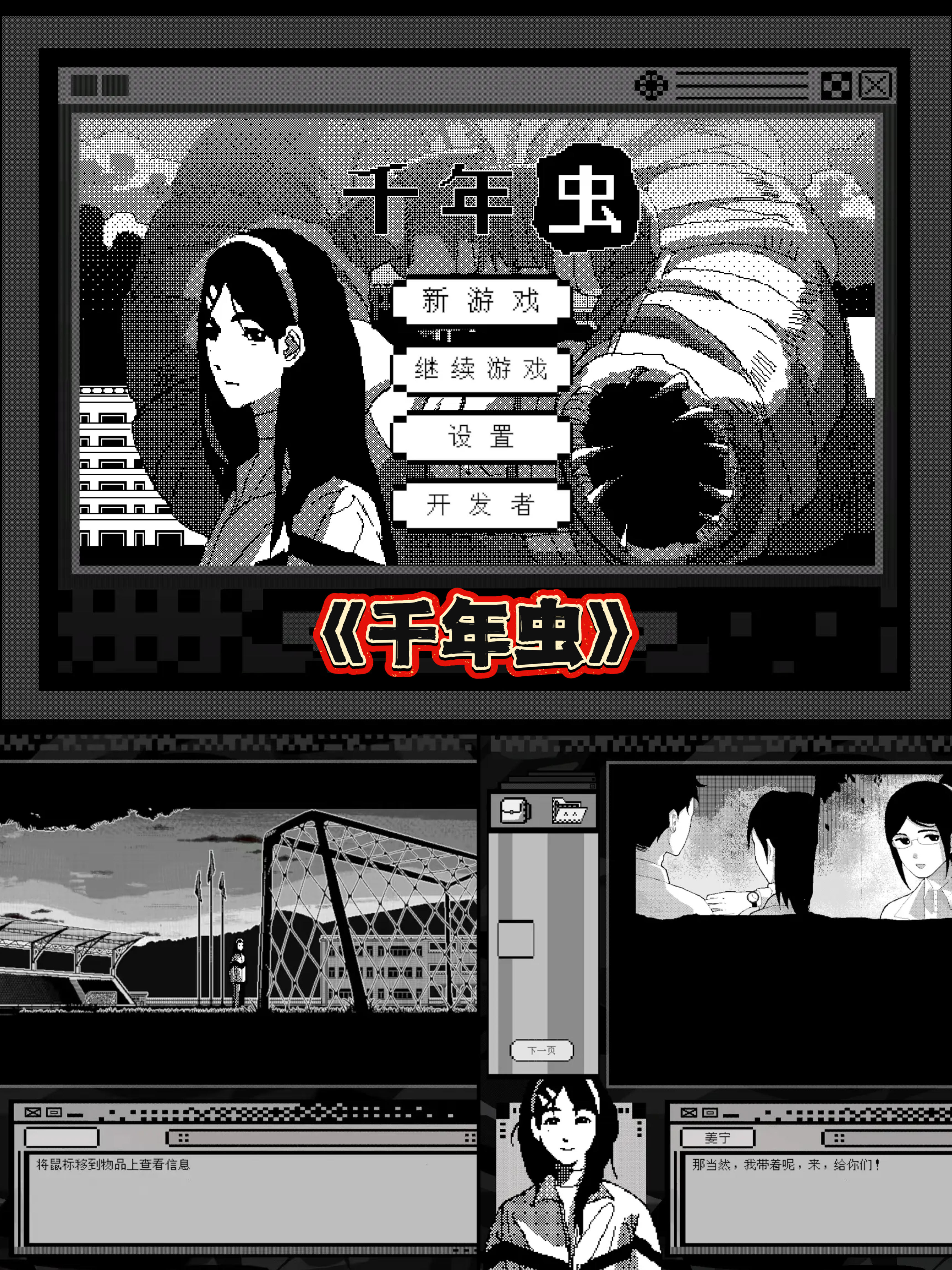 黑白像素风,剧情RPG,你要探索身边的违和事物、躲避千年虫的追击、发现世界的真相!