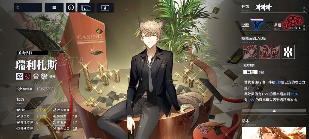 狗哥:瑞利扎斯(圣典学园),增伤辅助手,自称是“大家的哥哥”。萌新前期必练的辅助。