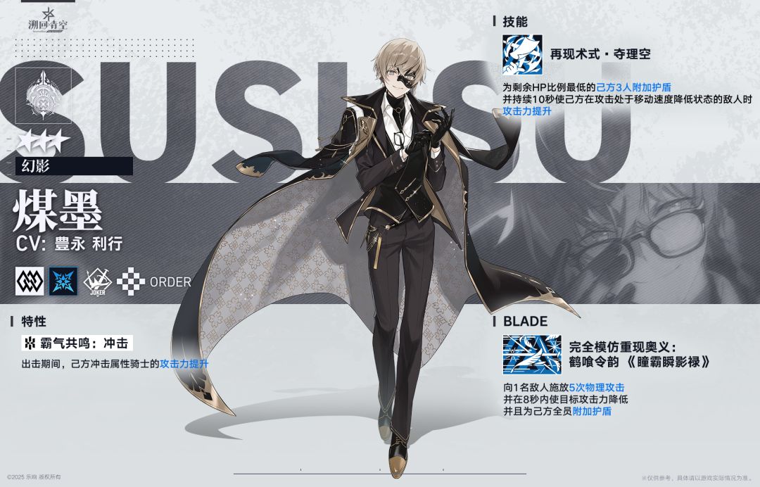 煤墨(幻影):冲击属性辅助手,普攻方式是闪现到前方一小段距离然后回到原地,其他信息直接上官方的图吧:
