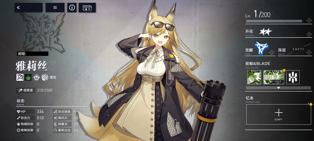 火狐狸:雅莉丝(潜行装备),远攻手,信息在上面已经描述过了,下塔的主要输出之一。