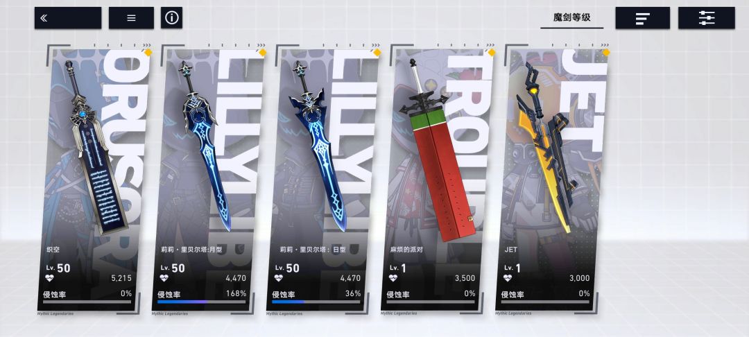 关于魔剑的侵蚀率,建议侵蚀率优先集中到一把。像我平常更厉害的是主攻手,所以“月型”的侵蚀率最高