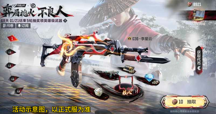 接下来看本期活动的核心奖励,不良人联动武器G36-李星云。枪身整体以红色和银色为主,一把龙泉宝剑贯穿其中,拿在手中霸气十足。不仅拥有固定弹道,而且还拥有独特的华阳针法属性。使用技能后,发射数枚华阳针,命中敌人后造成减速。