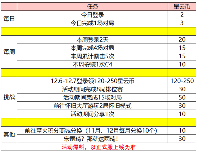 相信很多CFer对这样的活动不陌生,参与了不止一次。活动分为每日、每周以及挑战任务,完成后可获得大量的星云币。使用星云币可抽取奖励,本期活动采用抽一少一的游戏玩法,完成一轮后可解锁下一轮奖池,直到所有的奖励全部拿下。
