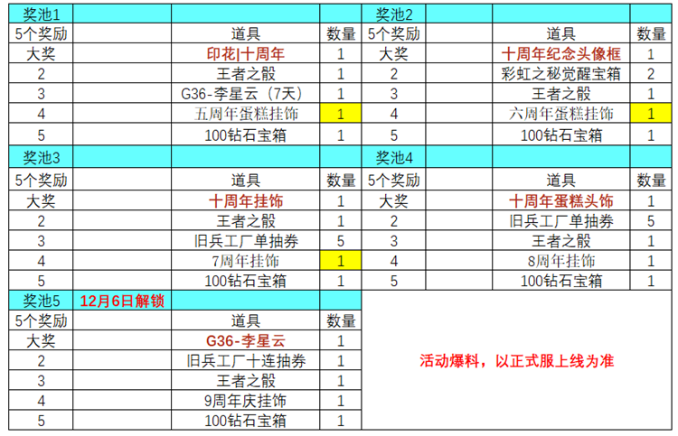 弈局枪火不良人活动奖励分为奖池奖励和商城兑换奖励两种。首先来看奖池奖励,其中可获得大量的钻石、王者之骰,这两种道具都是当下游戏中的热门道具,使用范围非常广泛,有需要的小伙伴一定不要错过。值得注意的是,在前四轮大奖分别是十周年专属万化——印花|十周年、十周年纪念头像框、十周年挂饰和十周年蛋糕头饰,非常具有收藏价值。