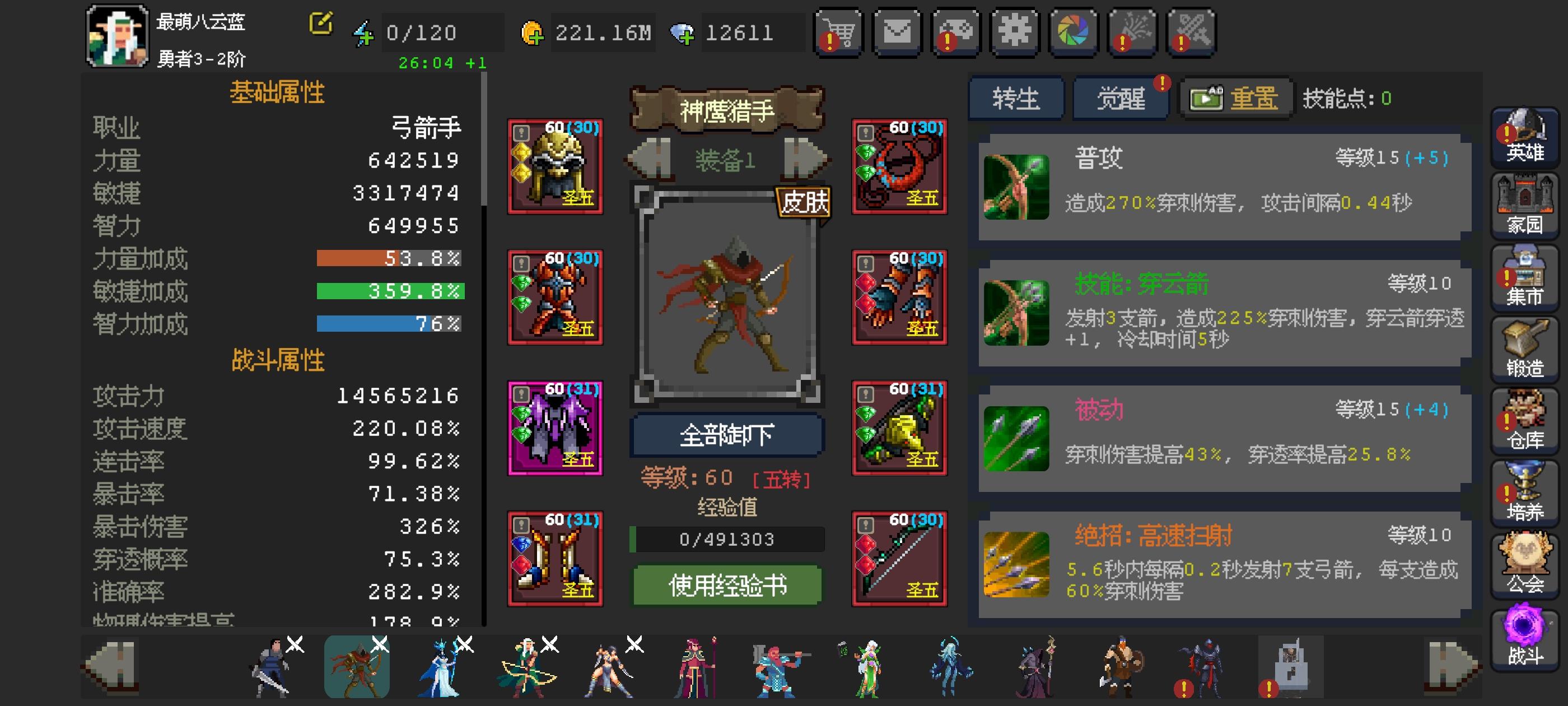 推图又推了两天,推到7300,总是放成功的视频没意思,放一波神鹰推不动了是啥样的