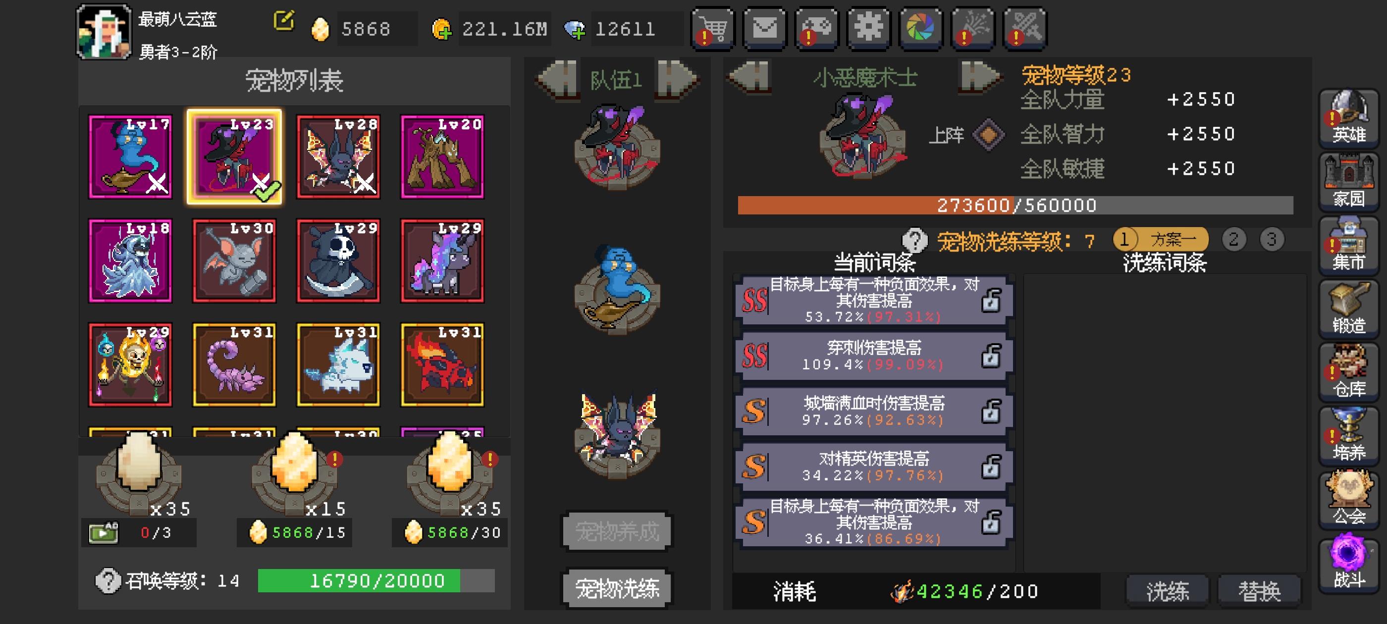 总的来说7000层是资源堆出来的,并没有太多新意,一次活动运气比较好,就顺势氪了神灯,另外消耗了100+的命定石,在7级洗练了一套,伤害从10wt翻到了40wt,果然是洗练之路呀