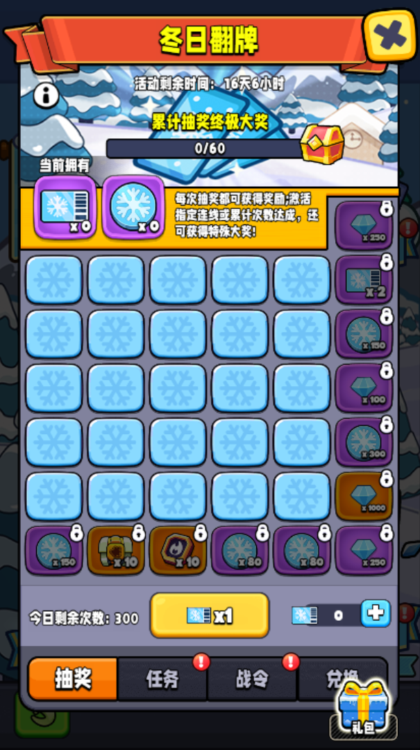 2、使用获得的「冬日聚会翻牌券」参与抽奖,每次抽奖均可获得不同的活动奖励;