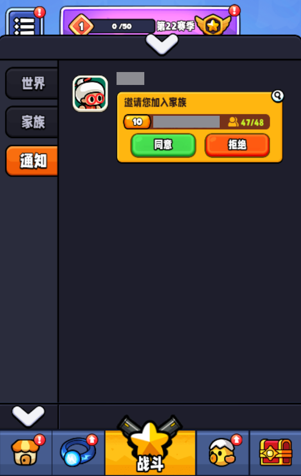 3、收到家族邀请时可在“通知”中查看,点击家族可查看该家族的所有成员;