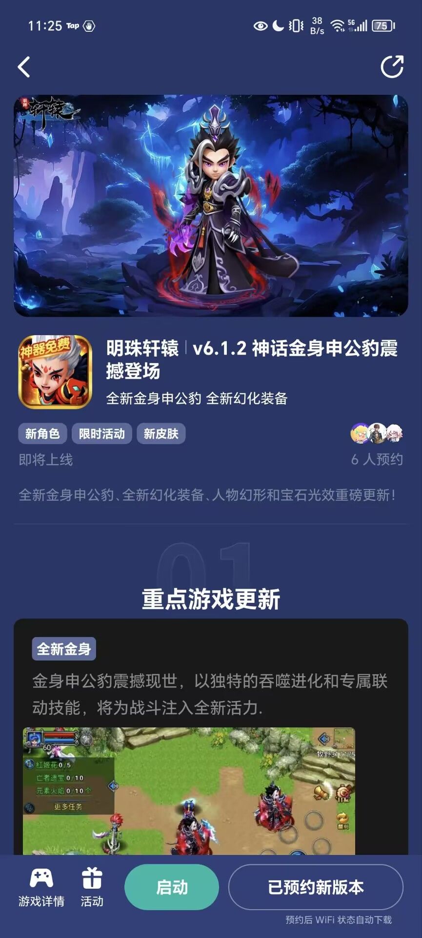 💥方式2:进入TapTap→搜索《明珠轩辕》→点击“v6.1.2 神话金身申公豹震撼登场”进入→预约新版本→点击“预约”→截图。