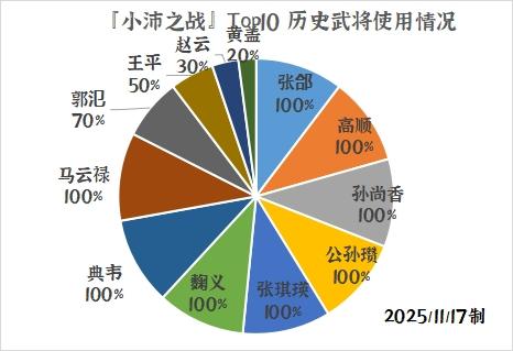 同时,花花也为大家整理了一下本次小沛之战(新)前十玩家的历史武将使用情况供大家参考: