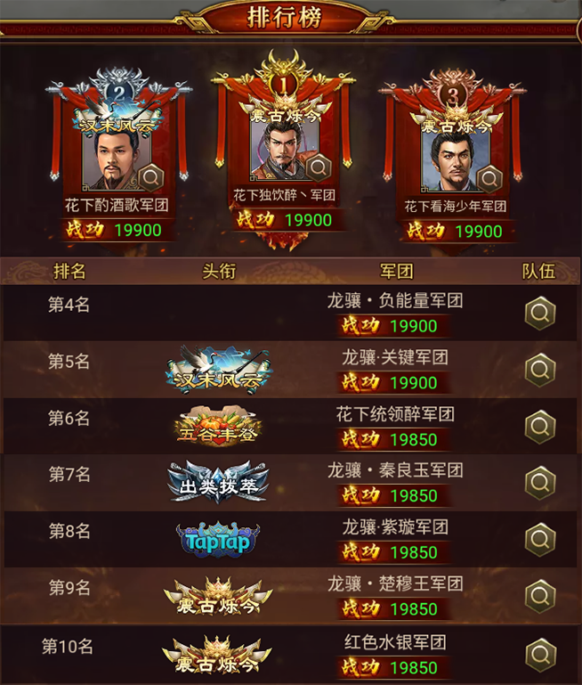 在本次小沛之战(新)中 花下独饮醉丶 军团以 19900 的战功摘得桂冠,荣耀加冕,实至名归!