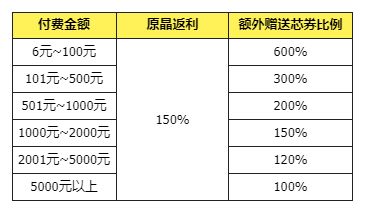 ★返利规则★现金充值的基准比例为:1元=10原晶=10芯券