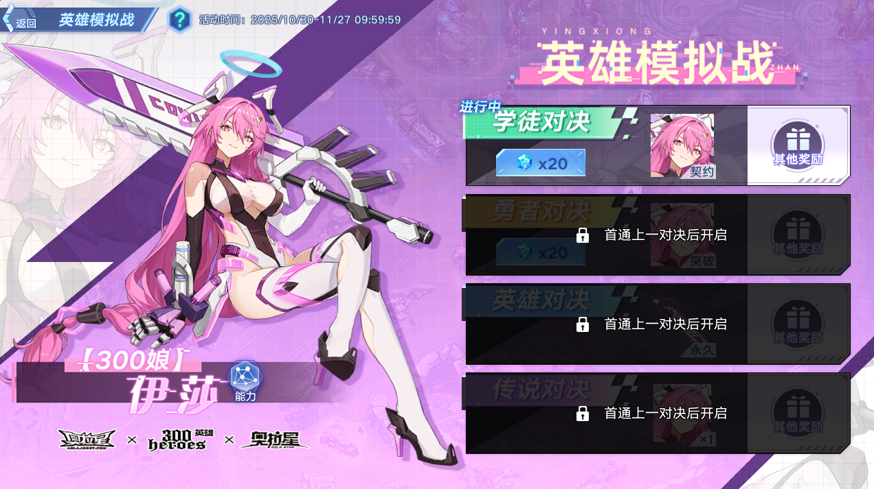 ·学徒对决:首次通关可获得伊莎契约及资源奖励;