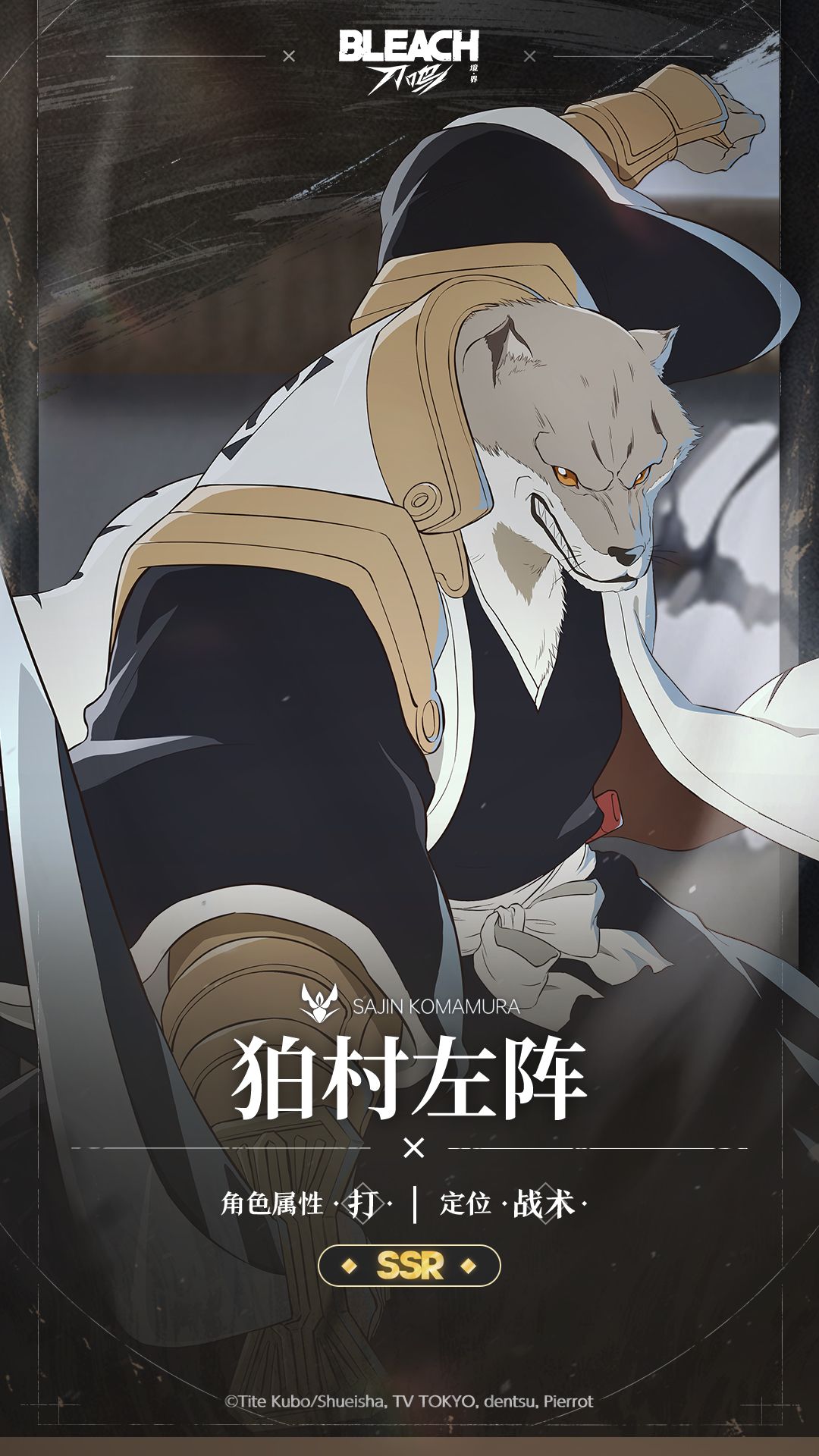游戏中的狛村是近距离输出与支援角色,可以大幅降低敌人打系抗性,斩魄刀「天谴」可以在后台帮助队友协同攻击,卍解「黑绳天谴明王」会召唤实体化的巨人根据对敌人叠加的【蓄势】造成巨额伤害。