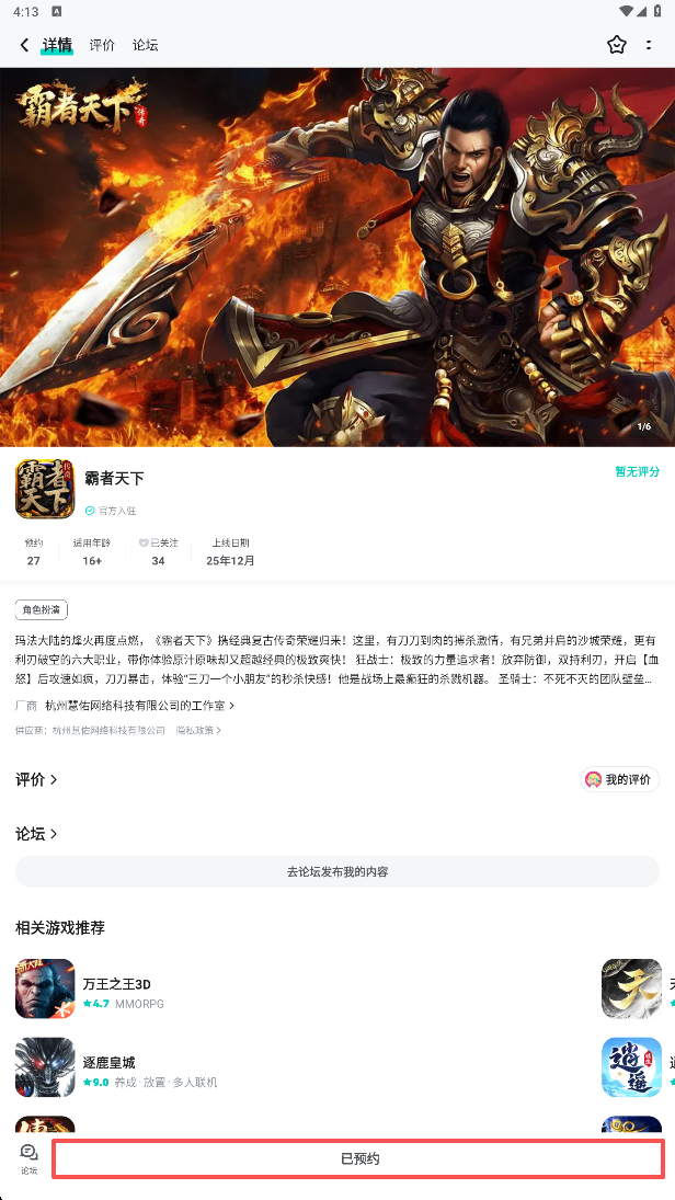 预约游戏并进行帖子评论