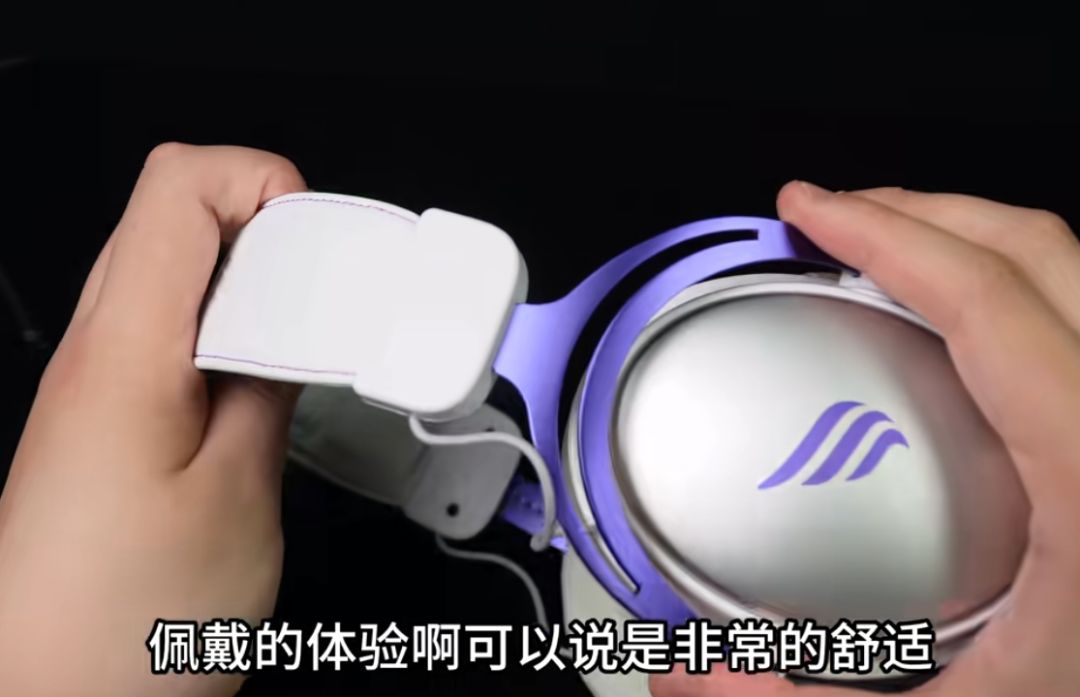 长时间鏖战的舒适度,是容易被忽视却至关重要的点。男生打游戏动辄 3-4 小时,笨重闷热的耳机只会劝退体验。 VSG 做到了 300g 轻量化设计,搭配 8 度斜角工学耳罩,就算戴眼镜的男朋友连续佩戴,耳周也不会出现明显压痕。冰丝材质的耳罩透气不闷汗,解决了长时间佩戴的闷热困扰,让他专注沉浸在游戏世界,不用频繁摘戴调整。