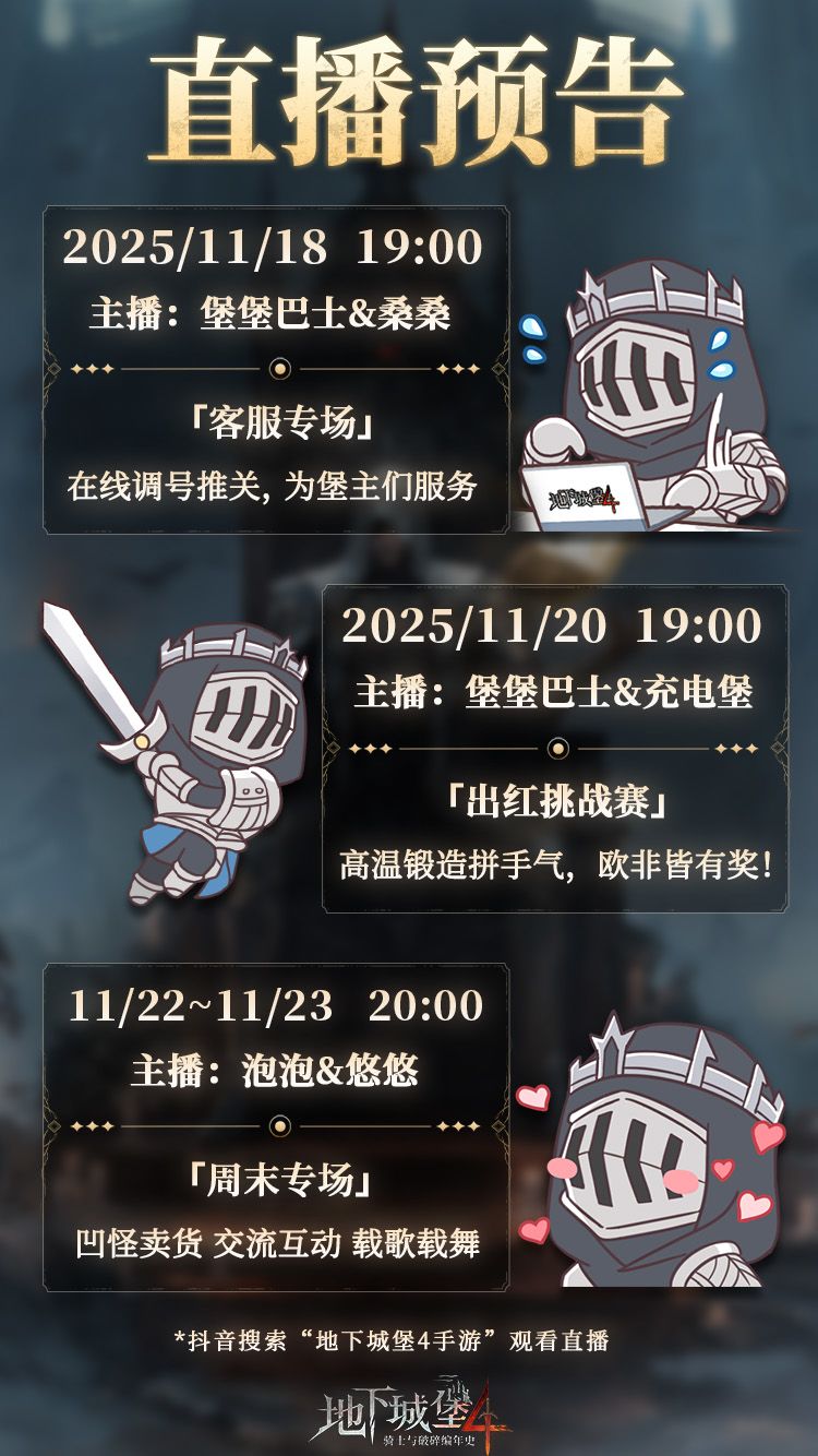 周四晚上,锁定“地下城堡4手游”抖音直播间!记得提前报名,我们不见不散!