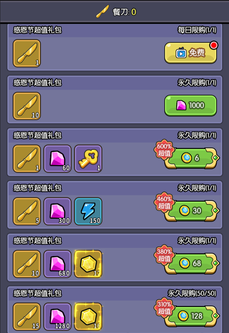 ④、活动结束后,未使用的付费餐刀将以100钻石/个的价格回收。
