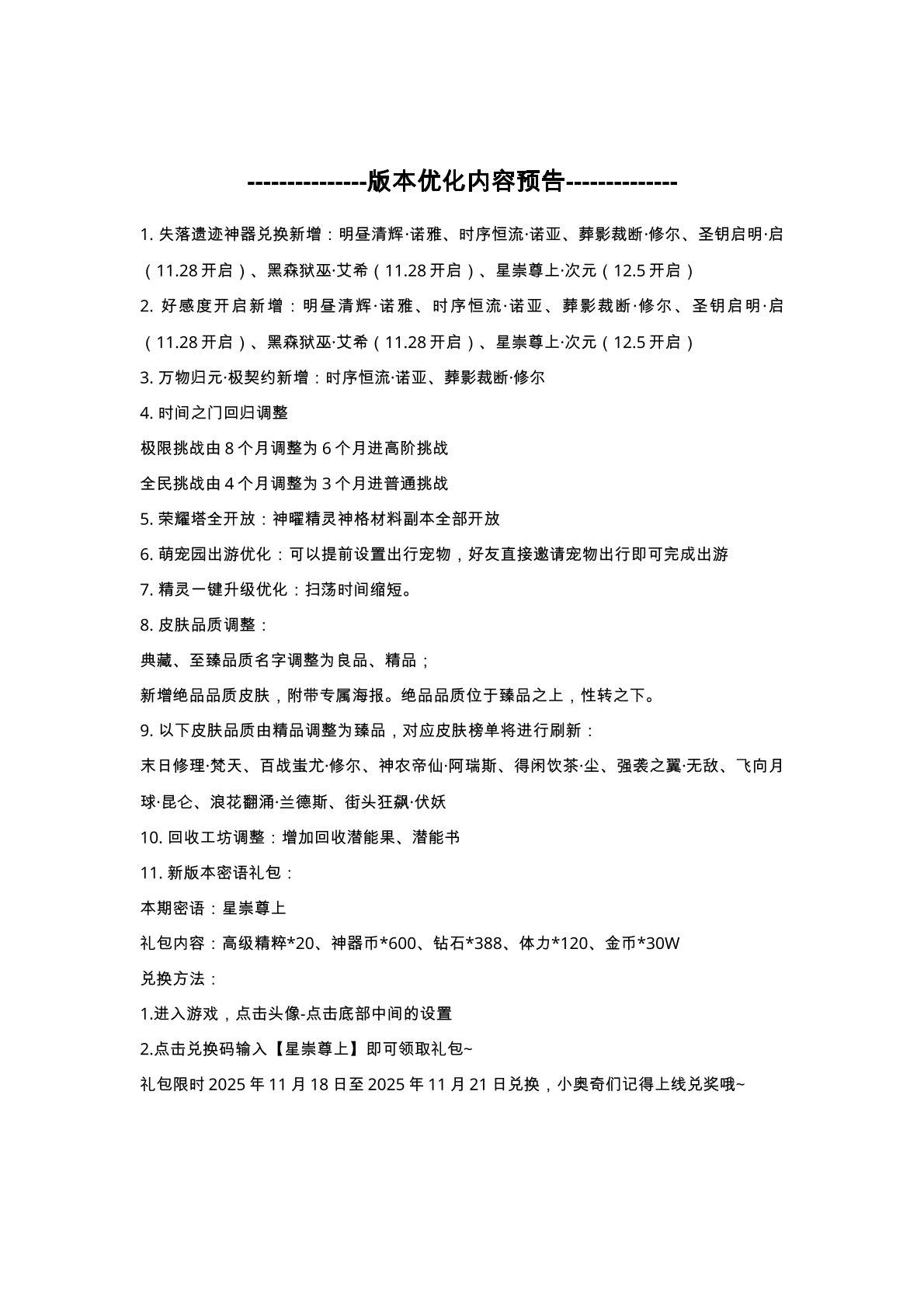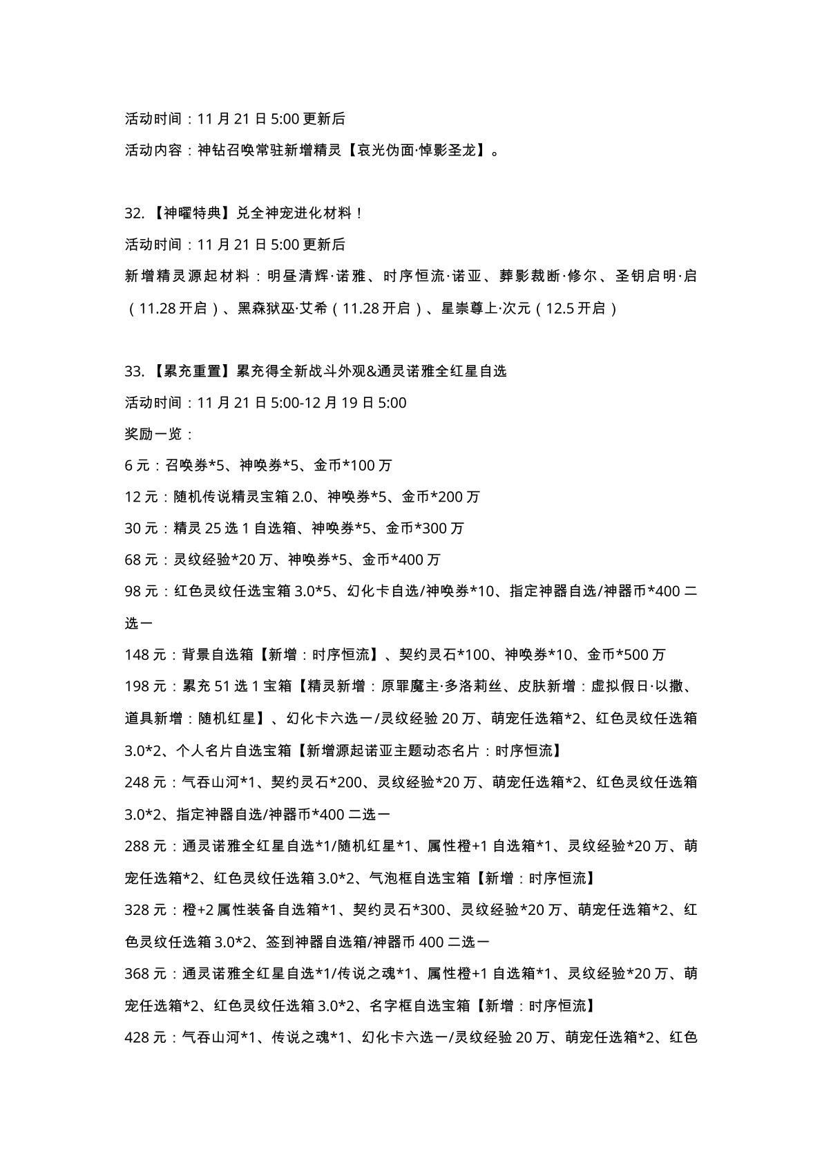 11月21日更新公告-源起时代开启,小诺生日会福利放送!