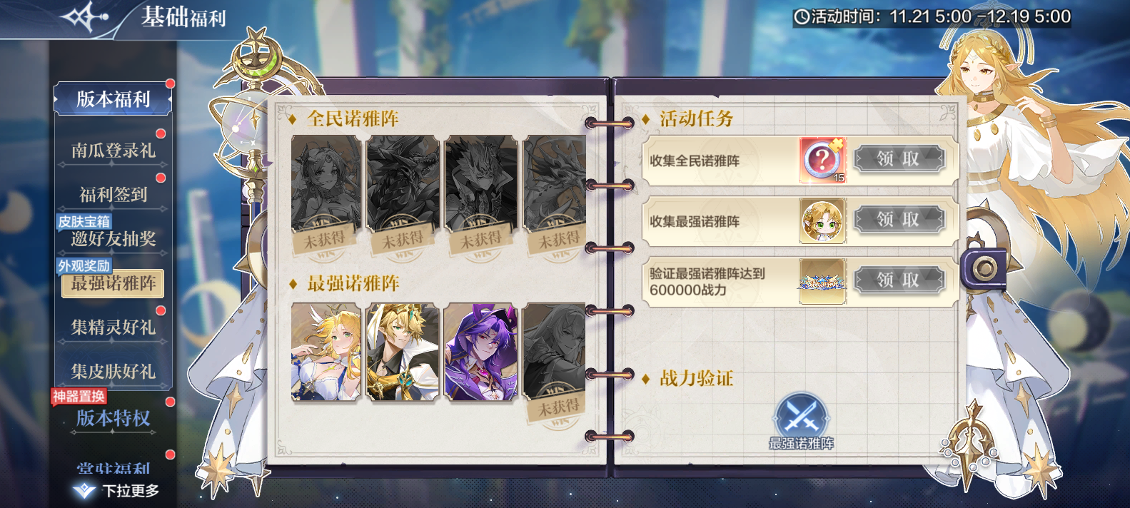 体力购买次数每日升至10次(11.21-11.28、12.5-12.12)