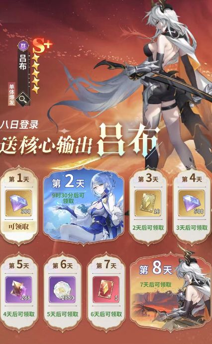 3. 奉先参上活动累计登录两天,完成主线任务以及 激活月卡既可获得S+神将吕布。