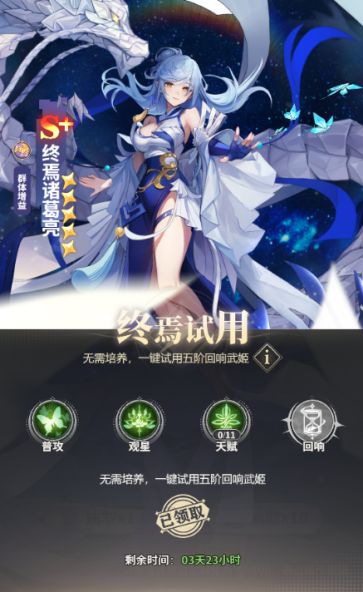 终焉活动开启后在活动期间可以试用终焉武姬但是只能在部分玩法使用并且有次数限制,可以通过这个试用体验终焉武姬的效果。