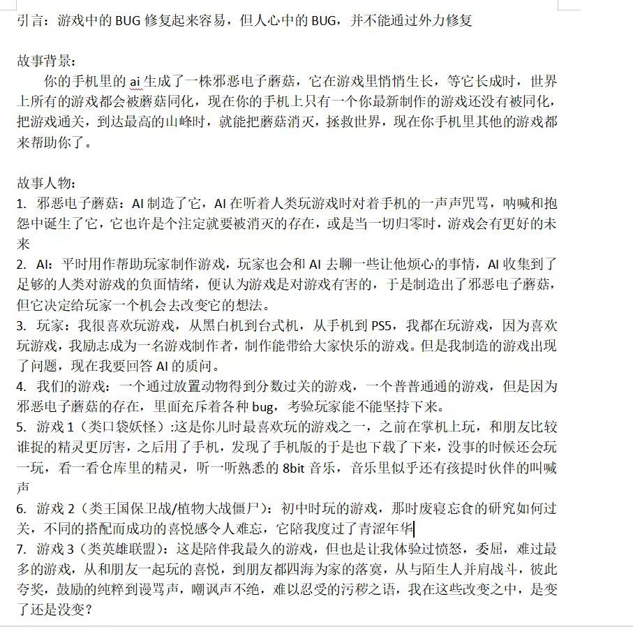 之后的话,我们就结合了药丸和goodbye和RR的故事进行了整合,最终呈现出来的就是ai智能蘑蘑头想要主角身子给教授当儿子的剧情咦嘻嘻嘻,坏了,我好像被蘑蘑头感染了脑机接口!!!口头禅,我的口头禅啊快回来你这家伙!!!