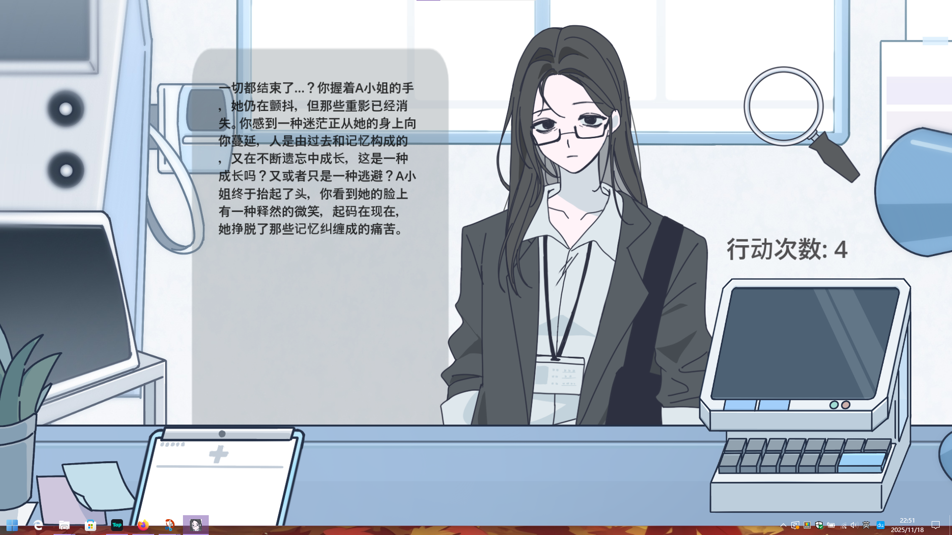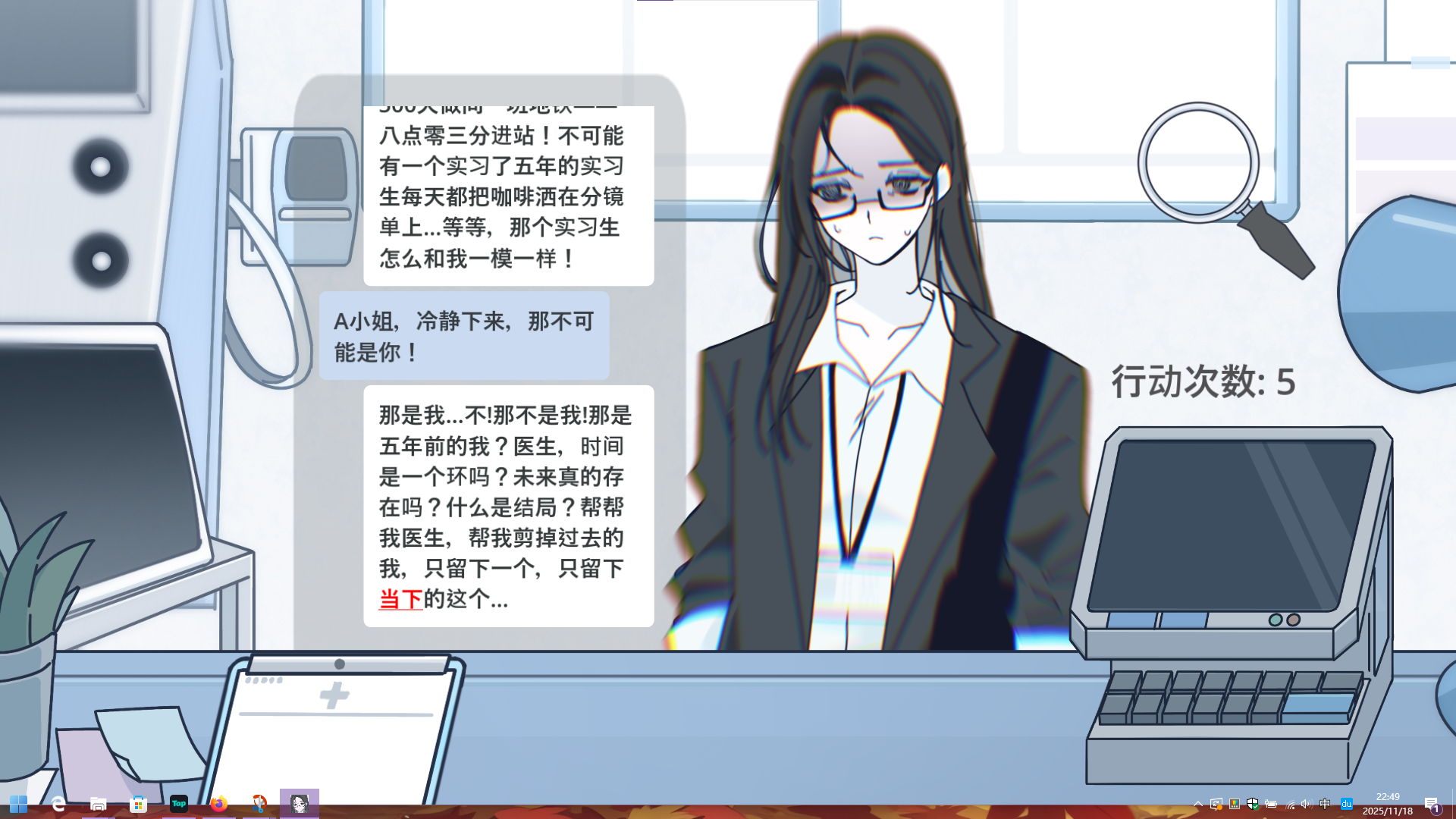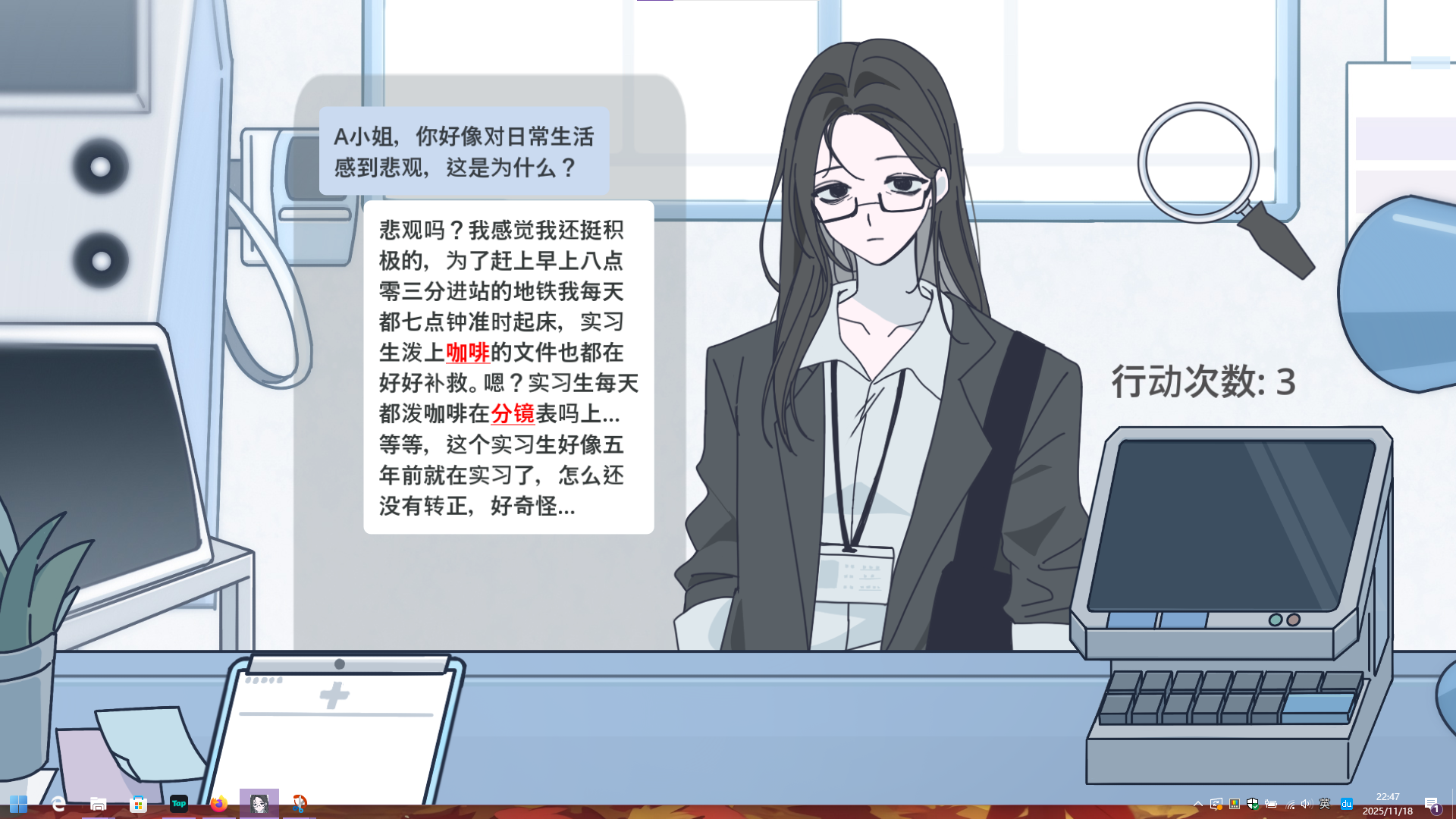 进入第二段对话,用放大镜观察A小姐的眼镜: