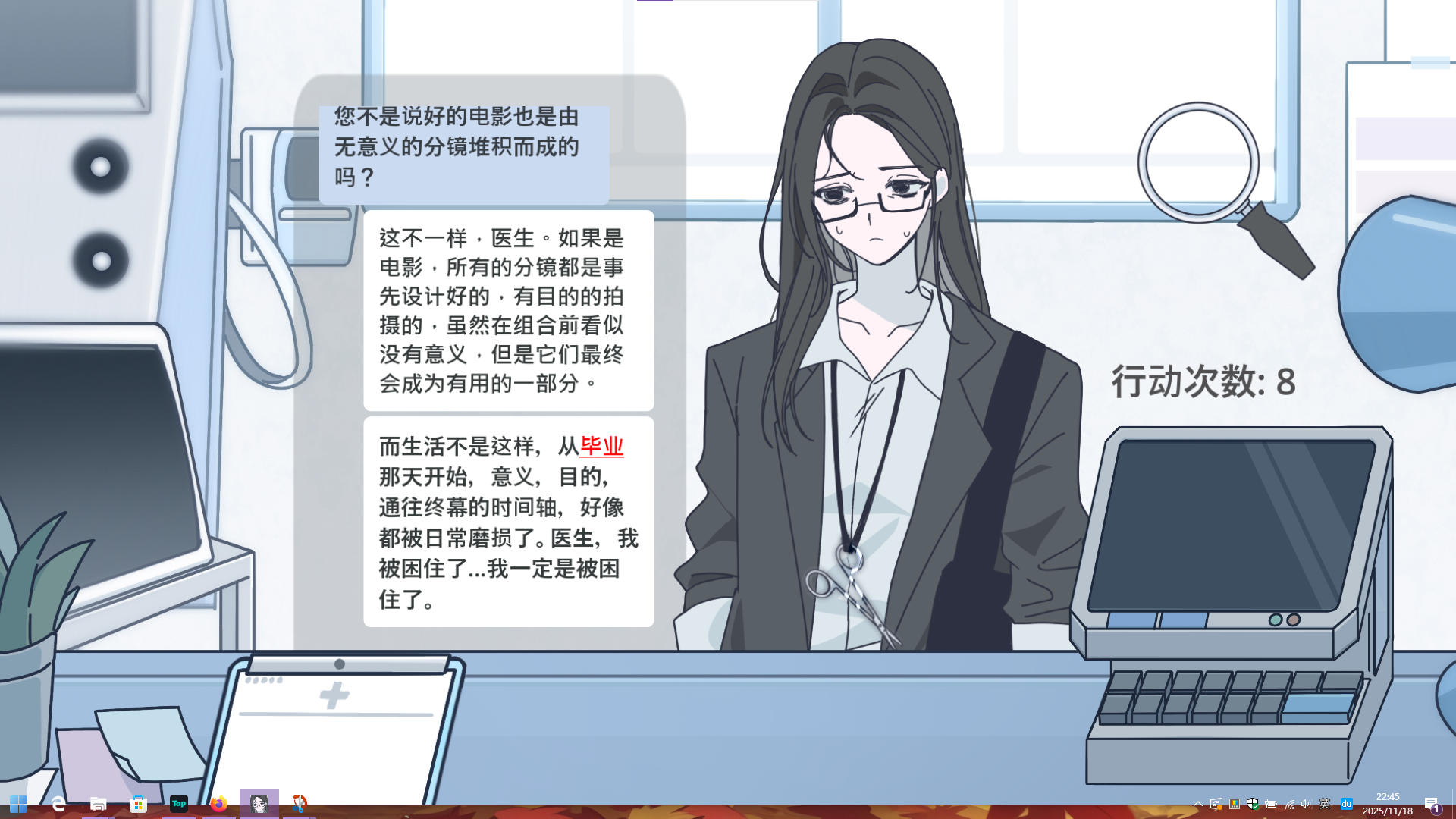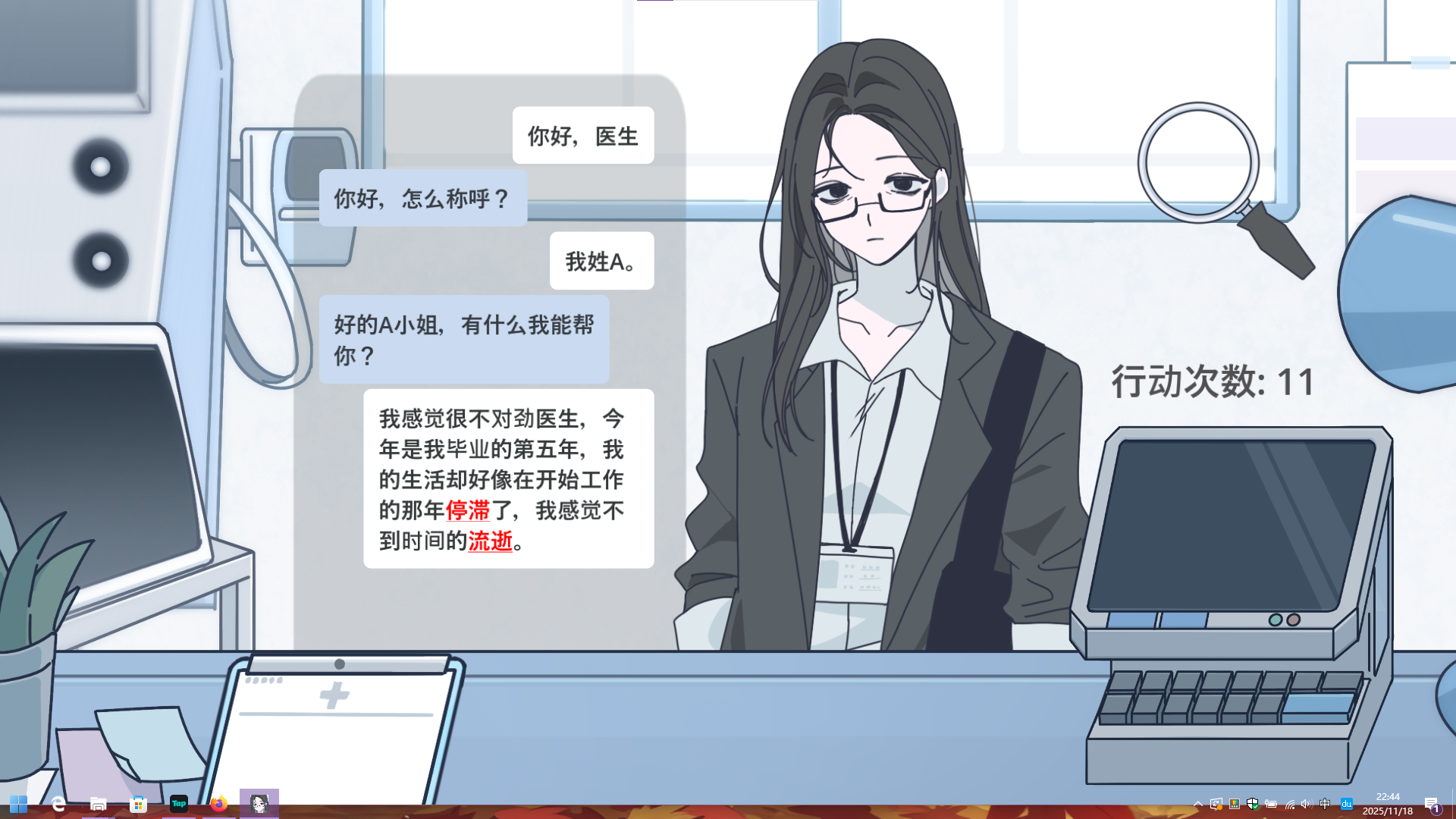 进入治疗,在对话中选择关键词“停滞”: