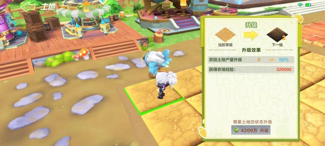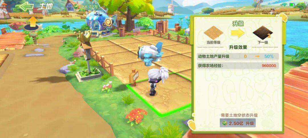 良好的养殖环境,也会为动物们带来安全感和舒适感,相应的也会为农场更多产出!开垦完所有牧场土地且饲养员等级达到29级的车友,就可以为动物乐园的土地升级,升级后的土地也将为动物产物带来50%的产量提升噢~