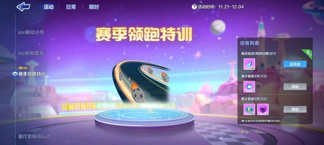 本次活动中,车友们将获取主动加速6.0技能的【紫域地带尾饰+】,拥有6.0尾饰后,车友们可前往活动-限时中,领取主动加速7.0技能的【银色彗星尾饰++】。