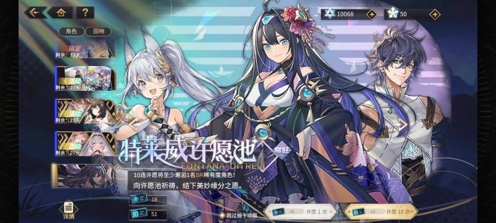 图一:常驻卡池每天送一次免费十连抽,别问常驻ssr有没有用,反正是送的,累计300抽。