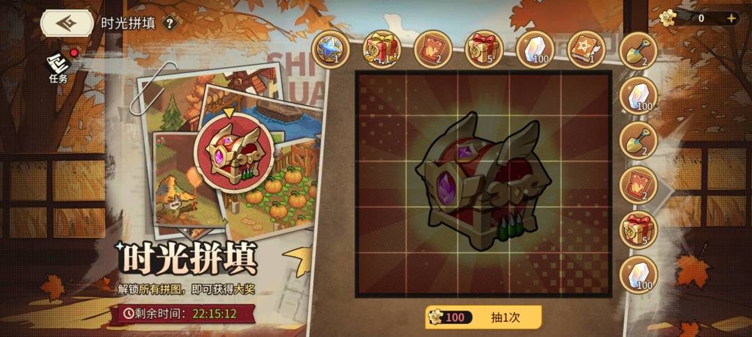 完成时光拼填内的每日任务,可获得时光碎片等奖励,完美解锁所有拼图还可获得“星系造物自选箱”!