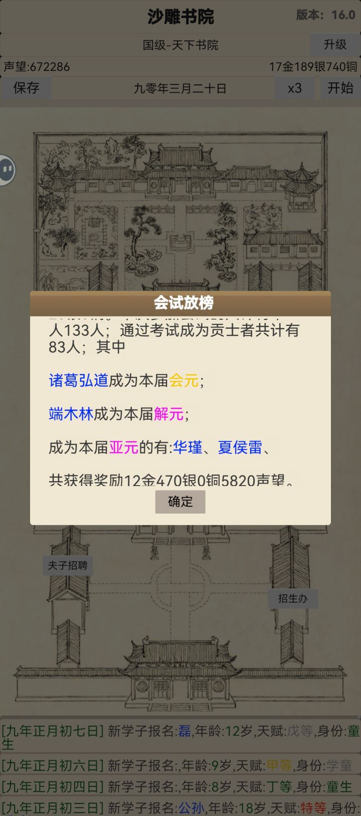 1.到可招募童生前不招募老师,仅提供学生观光服务。可招募童生后学童一律打回,他们会在家自学成才变成高数值的举人贡士后再回来报名学习。