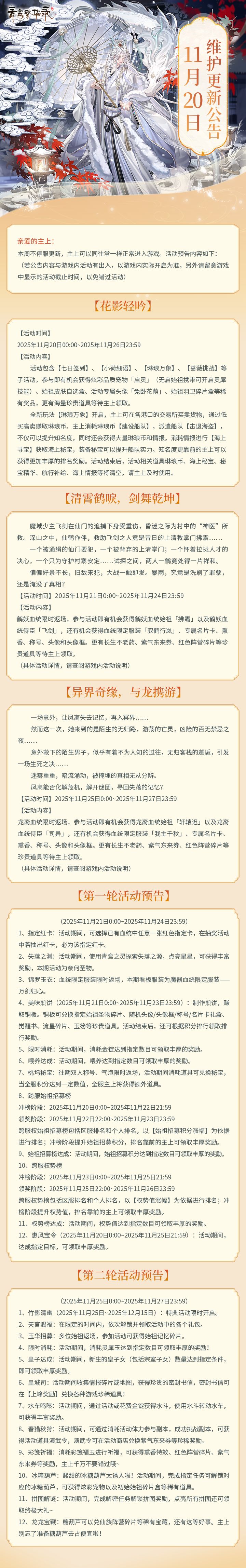 11月20日更新公告