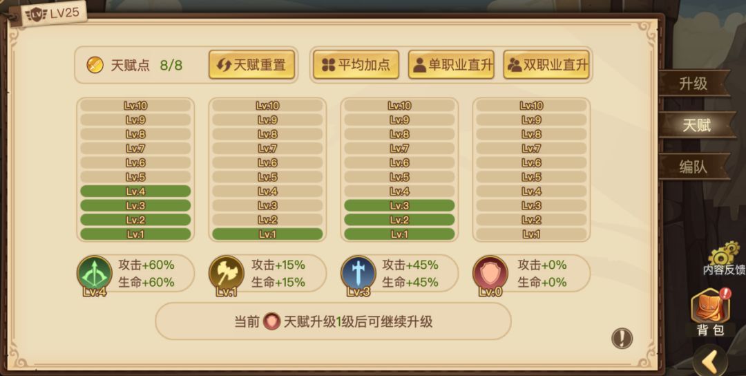 如果遇到打不过的关卡,可以检查一下养成属性是否已经都点满了。