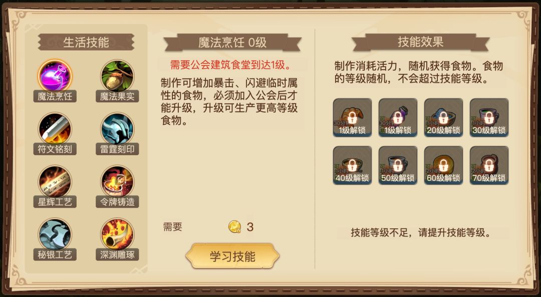 这里还有一件重要的事情是:了解下本公会的「科技建筑」升级情况,并且学习对应的「生产技能」,消耗活力加以生产,然后挂到交易行里卖。