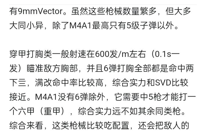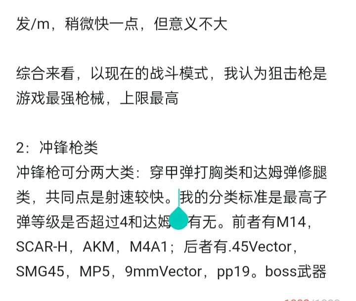 由于tap对于帖子的字数限制(仅1000字,完全不够用),不得不采用截屏方法。关于狙击枪、冲锋枪的内容在截图中。