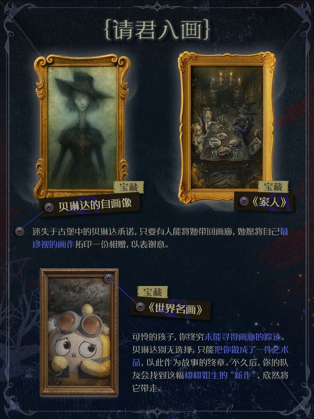 11月28日(周五),惊魂寻宝队全新「请君入画」版本开启,新怪物“画中女郎”、特殊房间“贝琳达的画廊”及诸多宝藏、道具上线,一起深入古堡,揭开贝琳达的故事。