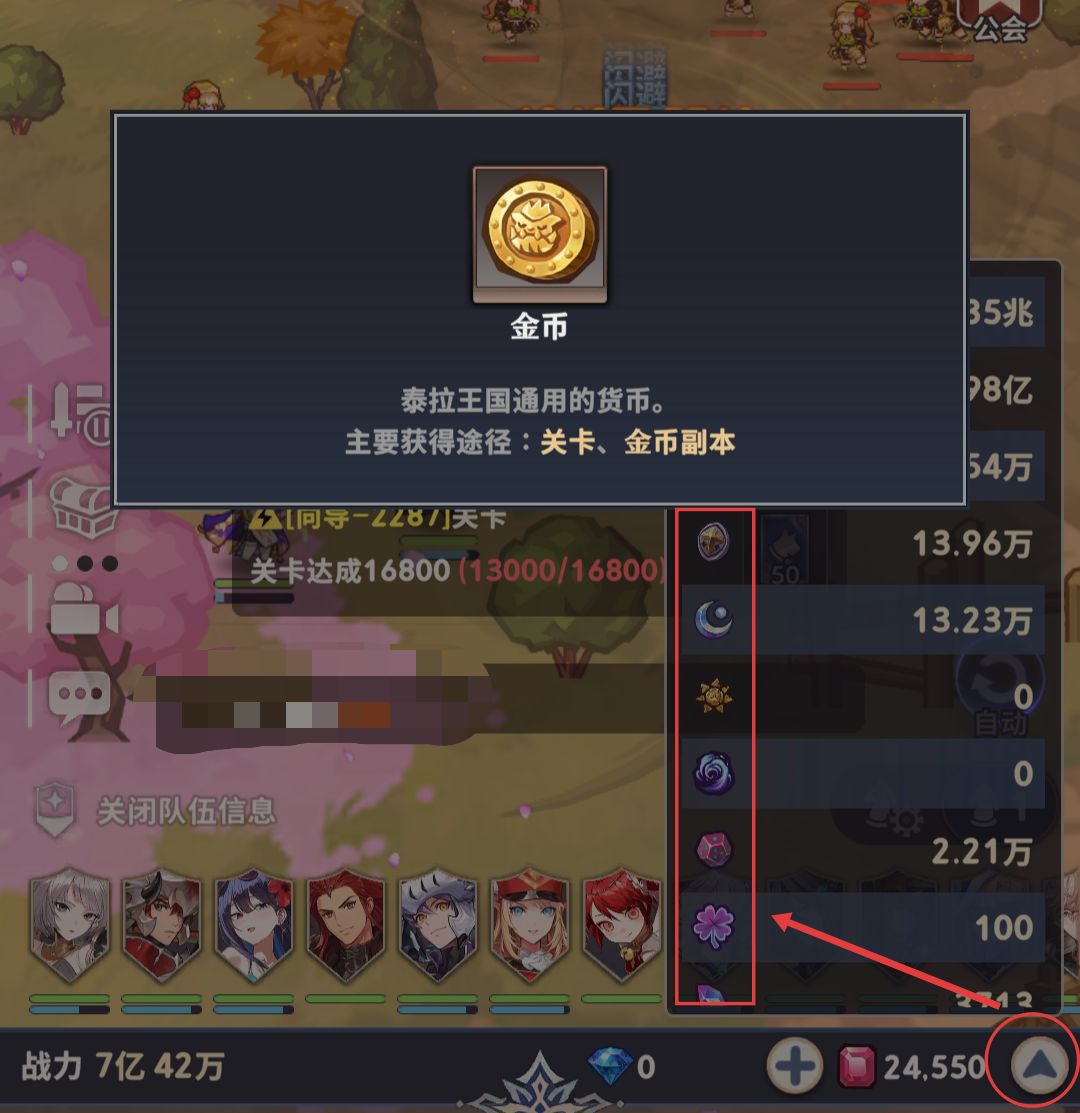 ▶在主界面和英雄信息界面点击箭头即可查看当前持有的货币;点击货币图标时,也可以查看该货币的获取途径。