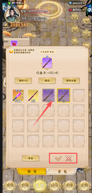 下面会变成对勾,需要再次点击要分解的武器,分解的武器点击后变成选中状态(灰色)