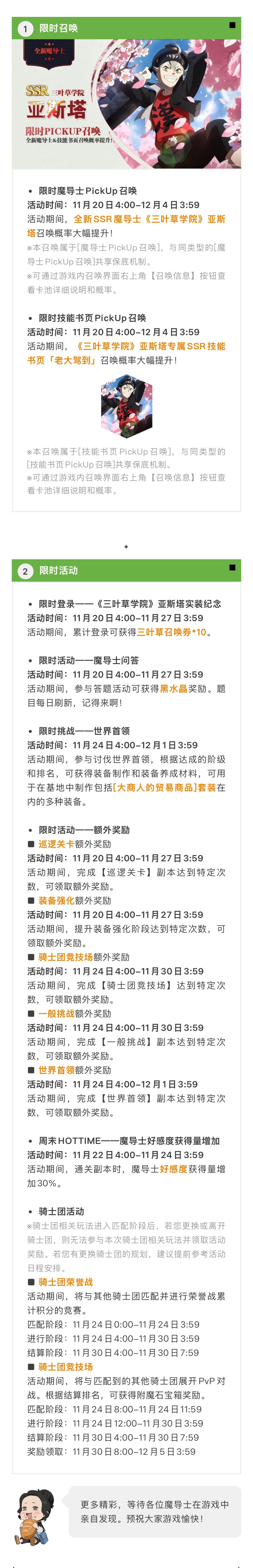 (内含礼包码)更新公告 | SSR《三叶草学院》亚斯塔UP!