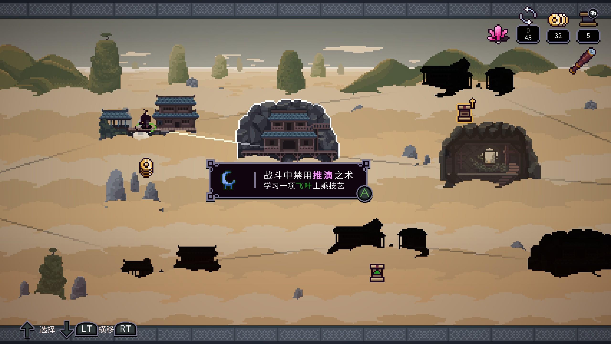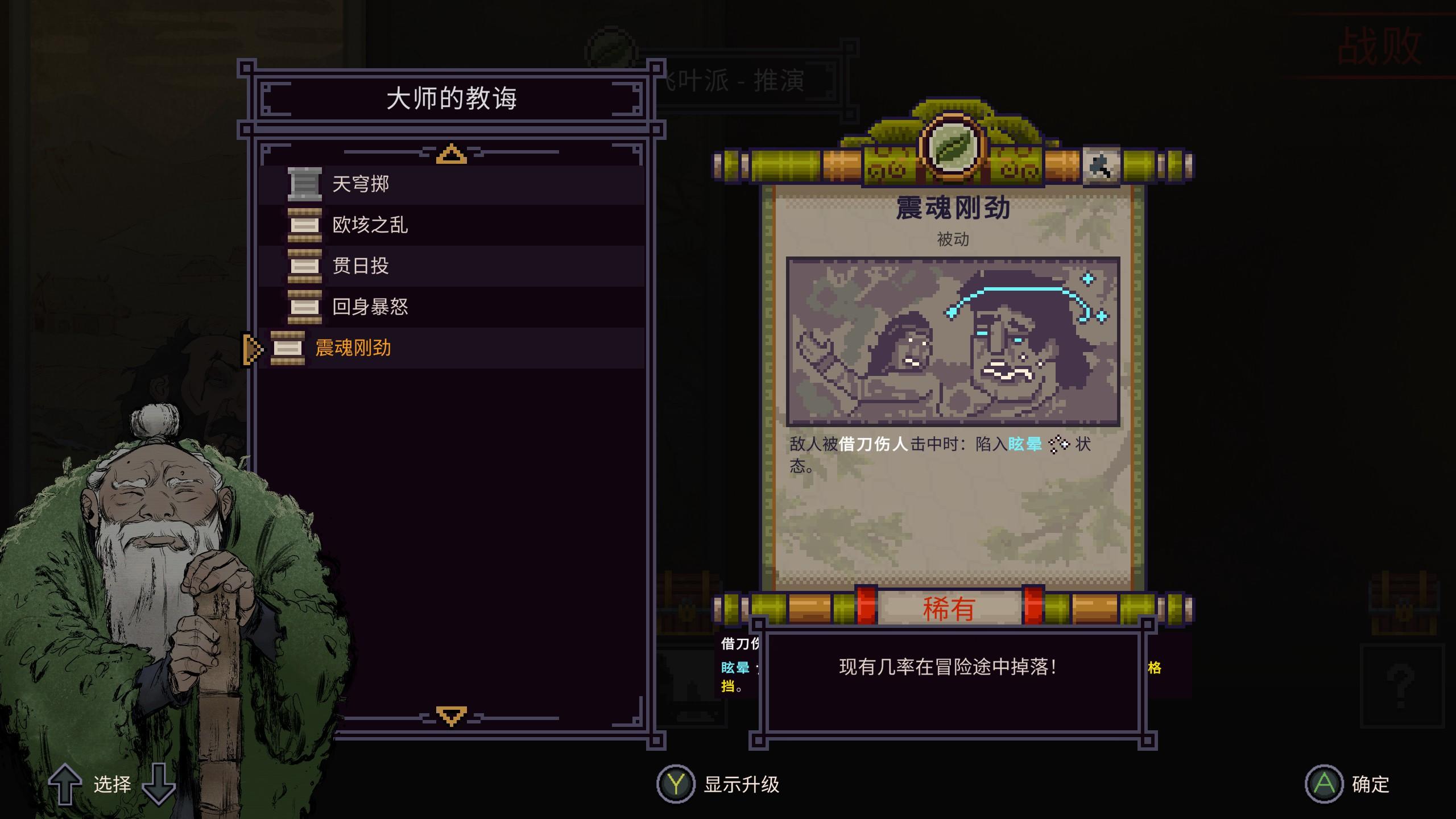 随着游戏的进程,玩家还会学到越来越多的武学秘籍,不仅能从五位大师学到新东西,玩家在击败关底boss时,还能学到一些基础技艺,每一次都能变得更强,也就能在地图中走得更远。