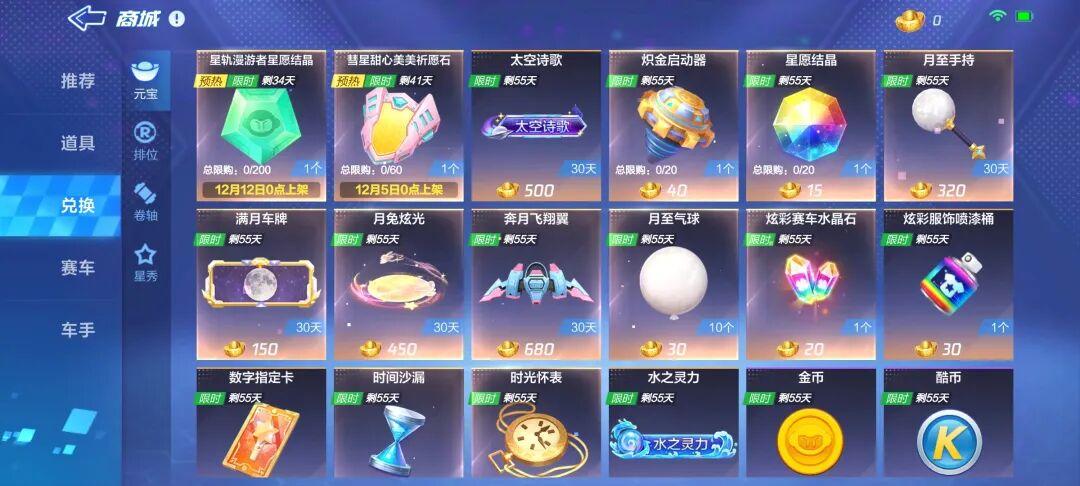 元宝商城兑换全面刷新,全新称号【太空诗歌】,月兔炫光、奔月飞翔翼等多个精品配饰,还有称号【水之灵力】、专属心愿结晶、祈愿石等好物待你兑换!